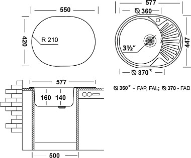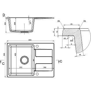 Мойка кухонная сталь Domaci "Равенна" Rite DFA 577х447 (6) R1TG R со смесителем D45-002cr