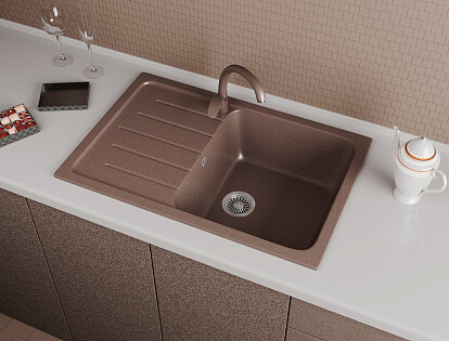 Мойка кухонная из искусственного гранита с крылом бежевая Domaci "Верона" 81-46 бежевая