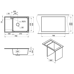Мойка кухонная кварцевая черная Granula Standart ST-7602 черный