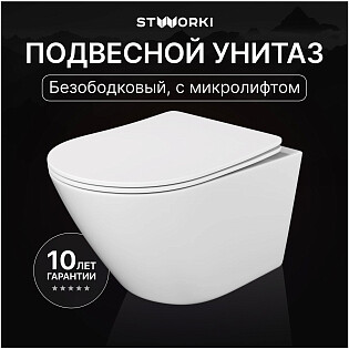 Унитаз подвесной безободковый с микролифтом белый Stworki "Молде" S23401WH