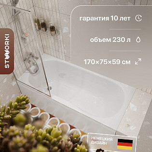 Ванна акриловая с ножками 170х75 см белая Stworki "Хальмстад" SW1017075026, SW5150170071