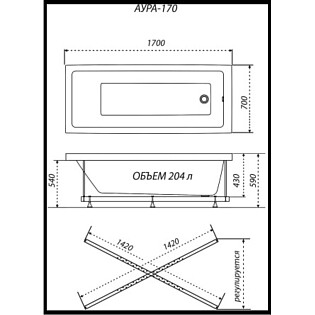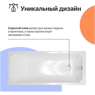 Ванна акриловая прямоугольная 170х70 см белая Triton "Аура" Щ0000043572