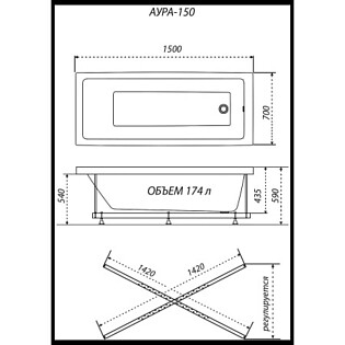 Ванна акриловая прямоугольная 150х70 см белая Triton "Аура" Щ0000043571