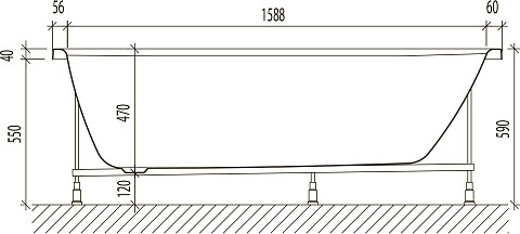 Акриловая ванна с ножками 170x75 см белая Diwo "Самара" Щ0000046595, Щ0000048583