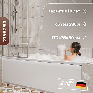 Ванна акриловая с каркасом 170х75 см белая Stworki "Хальмстад" SW1017075026, SW5017070050