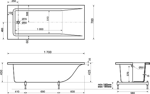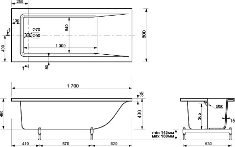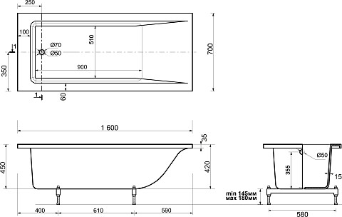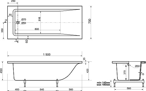 Ванна чугунная Creto Strong 150x70 см 25-1150