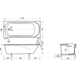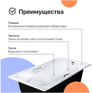 Ванна чугунная 170x75 с ручками белая Diwo "Ярославль" DY0015, D0017