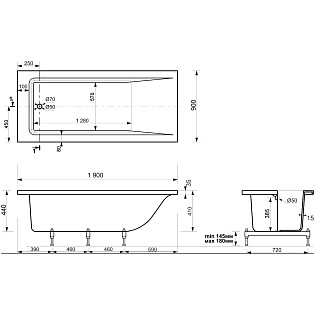 Ванна из искусственного камня прямоугольная с ножками 190x90 см белая Stworki "Ольборг"