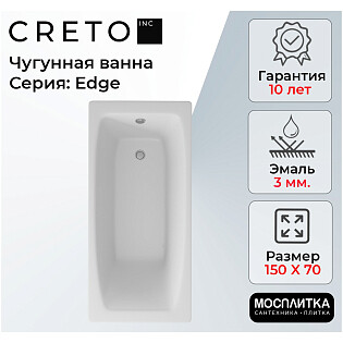 Ванна чугунная 150х70 см белая Creto Edge 26-1150