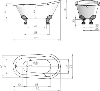 Ванна акриловая на ножках 75х170 см белая, золото Artemis Ottovia 1.05.407.007.01.3.28