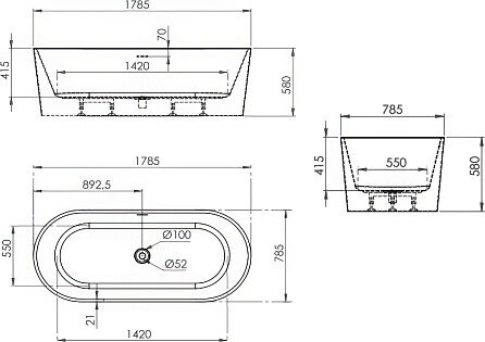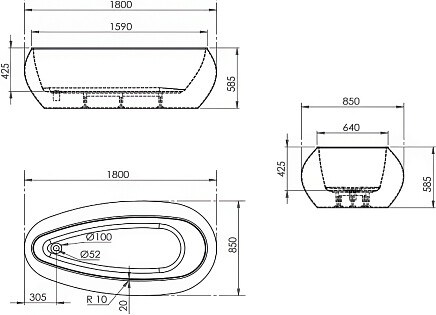Ванна акриловая овальная отдельностоящая 85х180 см белая Artemis Lalage 1.05.412.145.01.1.26