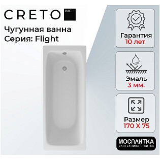 Ванна чугунная 170х75 см белая Creto Flight 27-1175
