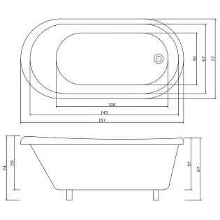Ванна акриловая овальная 81х180 см белая Artemis Bauci 1.05.409.011.01.1.28