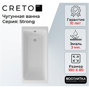 Ванна чугунная 180х80 см белая Creto Strong 25-1180