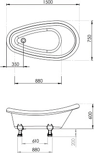 Ванна акриловая на ножках 75х160 см белая, хром Artemis Ottovia 1.05.407.007.01.1.28
