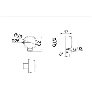 Шланговое подключение круглое с держателем для ручной лейки хром D&K DC1004813