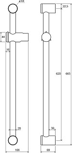 Душевая штанга металлическая 90 см хром Ravak 973.00 X07P014