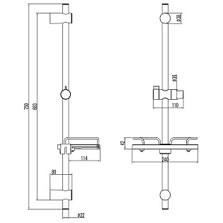 Штанга для душа с мыльницей и держателем 68 см хром Wasserkraft A006