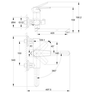 Смеситель для ванны однорычажный хром Cersanit Moduo А64098