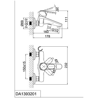 Смеситель для ванны однорычажный с душевым гарнитуром хром D&K Rhein Marx DA1393201