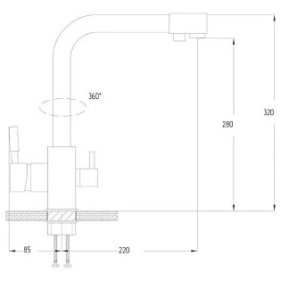Смеситель для кухни однорычажный с изливом для фильтрованной воды черный D-Lin D159315-1A