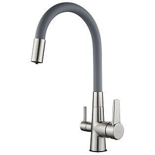 Смеситель для кухни с подключением фильтра питьевой воды и гибким изливом сатин D-Lin D159317-4H