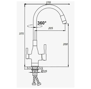 Смеситель для кухни однорычажный с изливом для фильтрованной воды хром D-Lin D159308