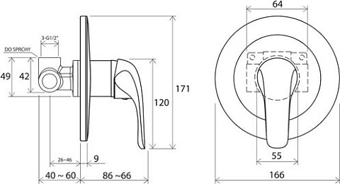 Смеситель для душа встраиваемый из латуни хром Wasserkraft 3151