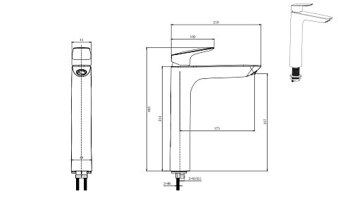 Смеситель на борт ванны однорычажный с душевым гарнитуром хром Vidima Next BA402AA