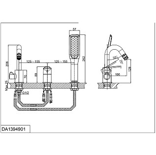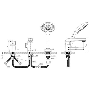 Смеситель для ванны на 3 отверстия с душевой лейкой и изливом хром D-Lin D190401