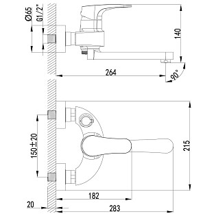 Смеситель для ванны однорычажный хром Vitra Solid S A42444EXP