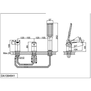Смеситель на борт однорычажный с душевым гарнитуром хром D&K Rhein Marx DA1394941