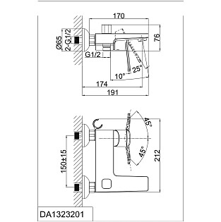 Смеситель для душа встраиваемый однорычажный с душевым гарнитуром хром D&K Rhein Marx DA1395201