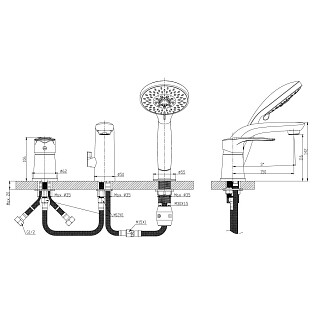 Смеситель для ванны однорычажный с душевым гарнитуром хром D&K Rhein Hertz DA1293201