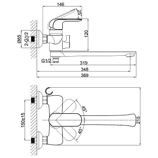 Смеситель для ванны настенный однорычажный хром Aquatek "Европа AQ1340CR