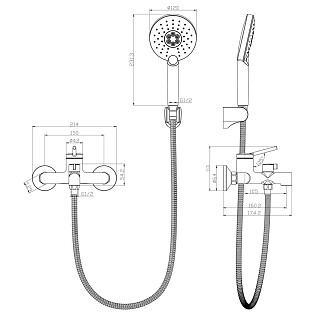 Смеситель для ванны однорычажный с душевым гарнитуром хром Wasserkraft Vils 5601