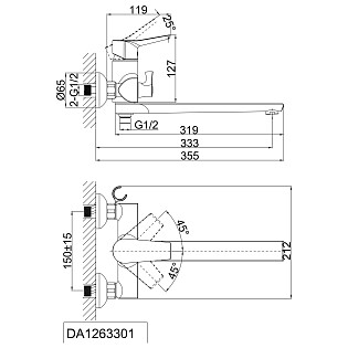 Смеситель для ванны однорычажный с душевым гарнитуром хром D&K Rhein Mosel DA1263301