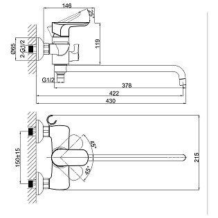 Смеситель для ванны хром Lemark Unit LM4502C