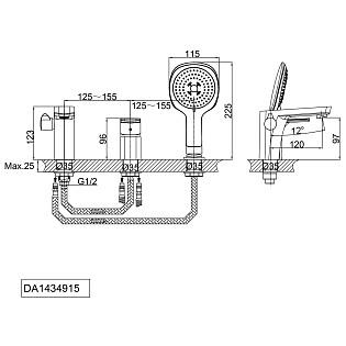 Смеситель на борт ванны однорычажный с душевым гарнитуром белый D&K Berlin Steinbeis DA1434916