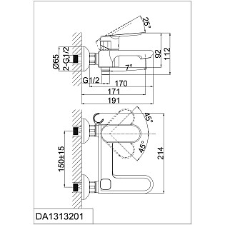 Смеситель для ванны однорычажный с душевым гарнитуром хром D&K Rhein Speyer DA1313201
