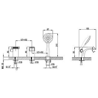 Смеситель на борт ванны хром Lemark Shift LM4345C