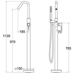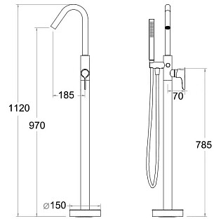 Смеситель для ванны напольный однорычажный с душевым гарнитуром черный Boch Mann Sella B BM9635