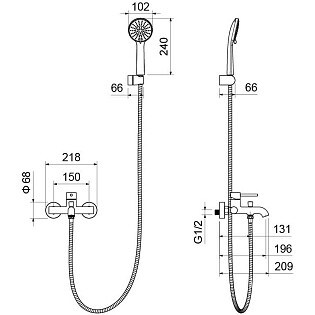 Смеситель для ванны с душевым гарнитуром черный хром Aquatek "Европа" AQ1349BGM