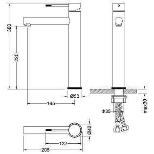 Смеситель для раковины встраиваемый из латуни хром Wasserkraft 3230