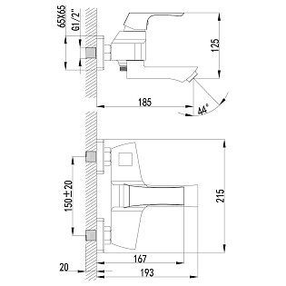 Смеситель для раковины встраиваемый с настенным изливом черный Wasserkraft A74543