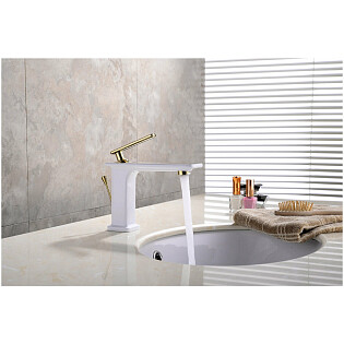 Смеситель для раковины белый, золото Lemark Mista LM6406WG