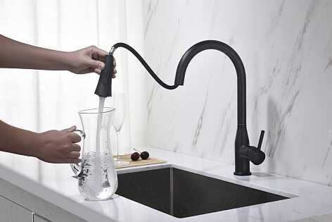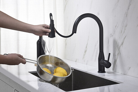 Смеситель для кухни с выдвижной лейкой черный Timo Saona 2336-03FL