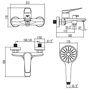 Смеситель для душа однорычажный черный Ravak 10° Free black-TD F 032.20-150 X070153
