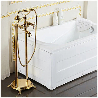 Смеситель для ванны напольный двухвентильный с душевым гарнитуром золотой Boch Mann Vico G BM9653