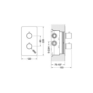 Смеситель термостатический встраиваемый для душа и ванны хром Ravak Chrome CR 063.00